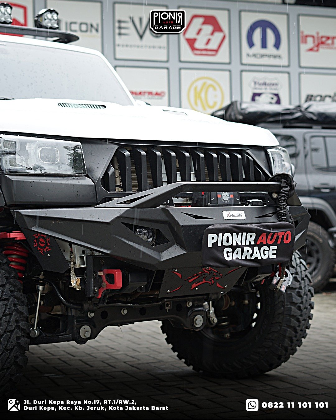 Unit yang satu ini merupakan salah satu hasil modifikasi dari Pionir Auto Garage, yang mengusung konsep full offroad upgrade dengan paket body kit Kresh Wolf Totem serta peningkatan kaki-kaki dan aksesoris penunjang medan ekstrim.