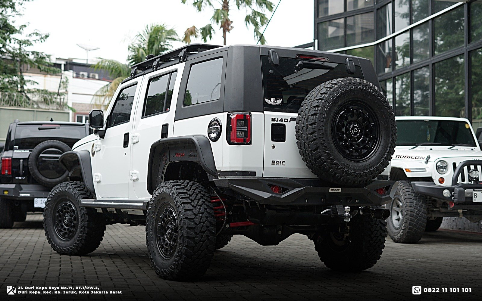 Untuk paket modifikasi seperti ini, estimasi pengerjaan berada di kisaran 1 hingga 2 minggu, tergantung antrian kendaraan dan seberapa rumit instalasi aksesoris BAIC BJ40.