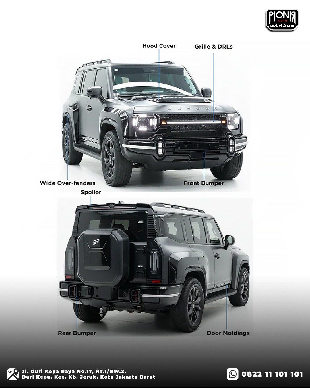Pionir Auto Garage menyediakan body kit premium dan pemasangan profesional untuk Jeep, SUV, hingga sedan modern.